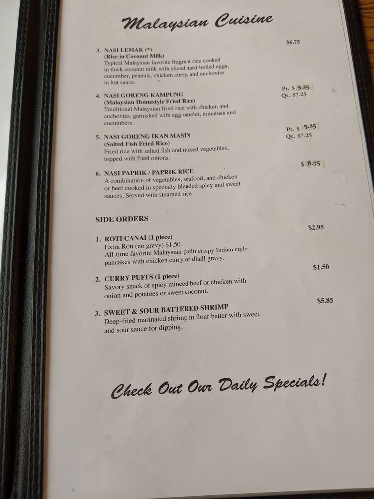 Welcome to Rasa Ria, a hidden gem nestled in Kalamazoo, MI. This family-owned establishment is a must-visit for food lovers seeking authentic Malaysian and Indian flavors. The menu features standout dishes like Chicken Curry, where tender chicken and potatoes are enveloped in a creamy coconut sauce, and the deliciously spiced Special Chili Chicken. For noodle enthusiasts, the Fried Kway Teow and Mee Goreng deliver a delightful fusion of seafood and vegetables.